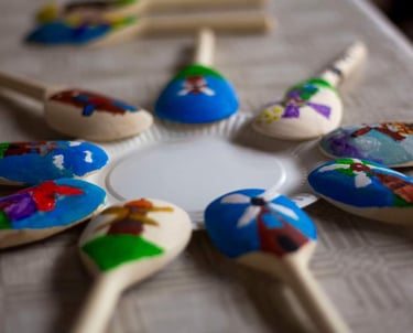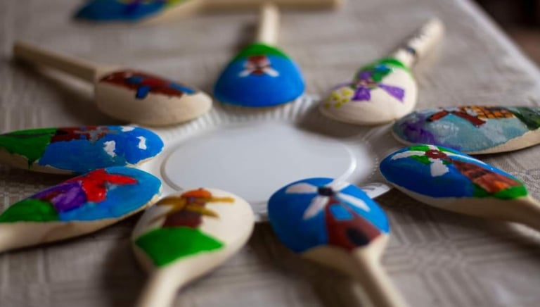 Vienas populiariausių užsiėmimų — žaisliuko gamyba iš medinio šaukšto, kuriame vaikai: